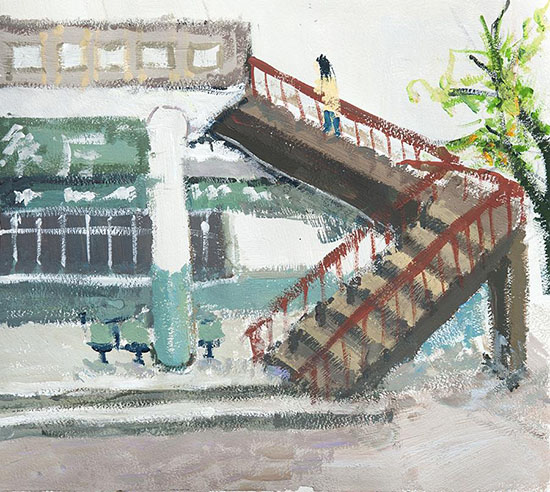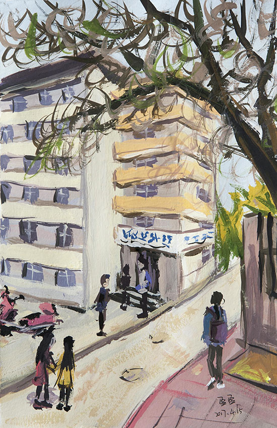 你看,画笔轻动,师大在一笔一画里清晰起来。巍巍楼宇,葱葱花木,师大在色彩斑斓里定格成诗。