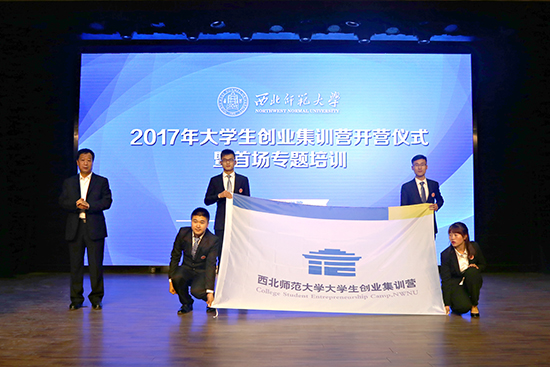 5月10日,我校2017年大学生创业集训营开营仪式暨首场专题培训在学生发展中心举行。副校长、创新创业学院院长张生勇为创业集训营学员代表授旗,宣布甘肃省丝绸之路大学生创客训练营开营。船说创业咖啡创业导师、国家注册心理咨询师、大学生职业生涯规划师晁媛媛,甘肃船说众创空间文化产业有限公司首席执行官李国梁,甘肃省茶叶流通协会会长唐陈虓参加活动。
